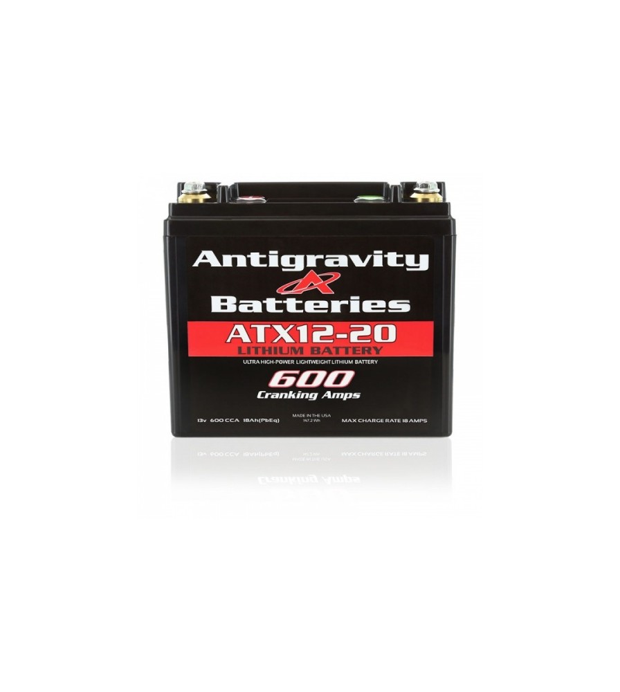 Antigravity ATX-12 Lithium Battery features: Very high power-to-weight ratio for strong cranking performance., Rugged ABS case with adapter posts to fit many OEM terminals., Low self-discharge and designed for long cycle life with minimal maintenance..